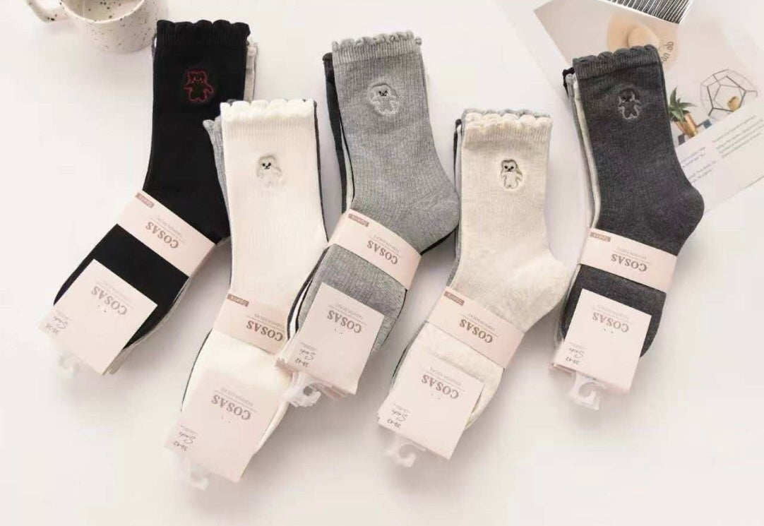 ✅ 5 ali 10 parov nogavic z nežnim vezenim motivom medvedka 🐻