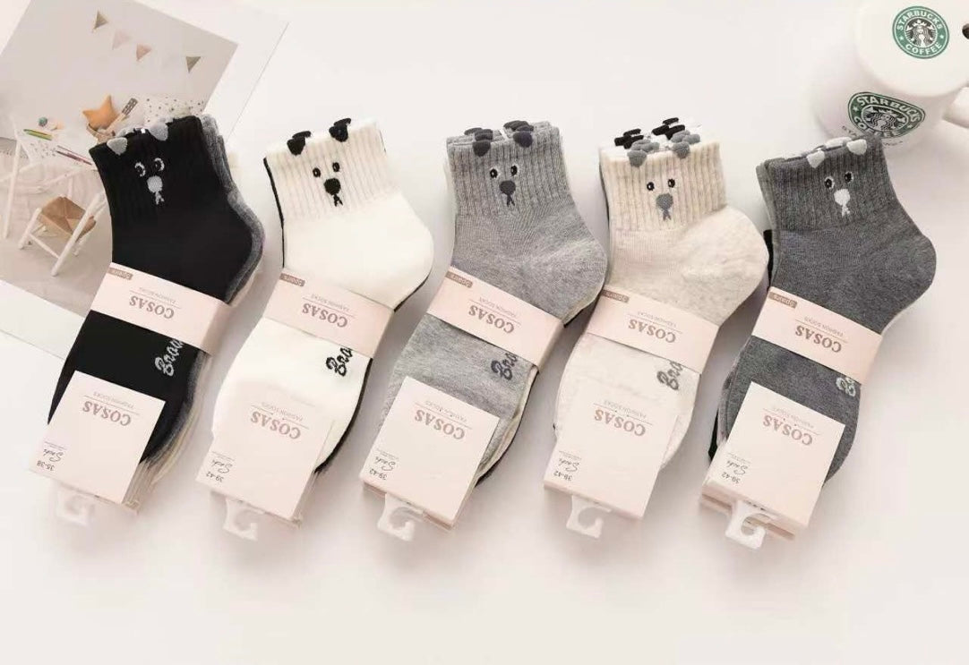 ✅ 5 ali 10 parov nogavic z ljubkim vezenim motivom medvedka 🧸