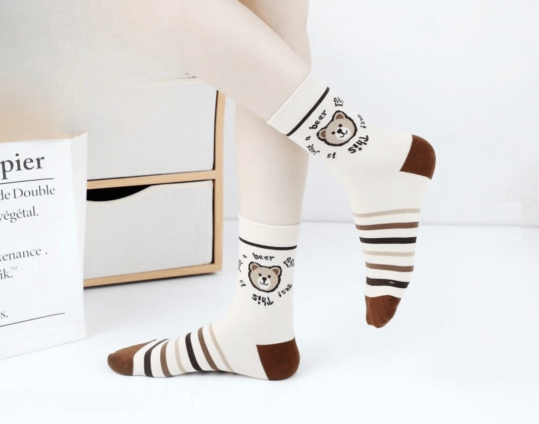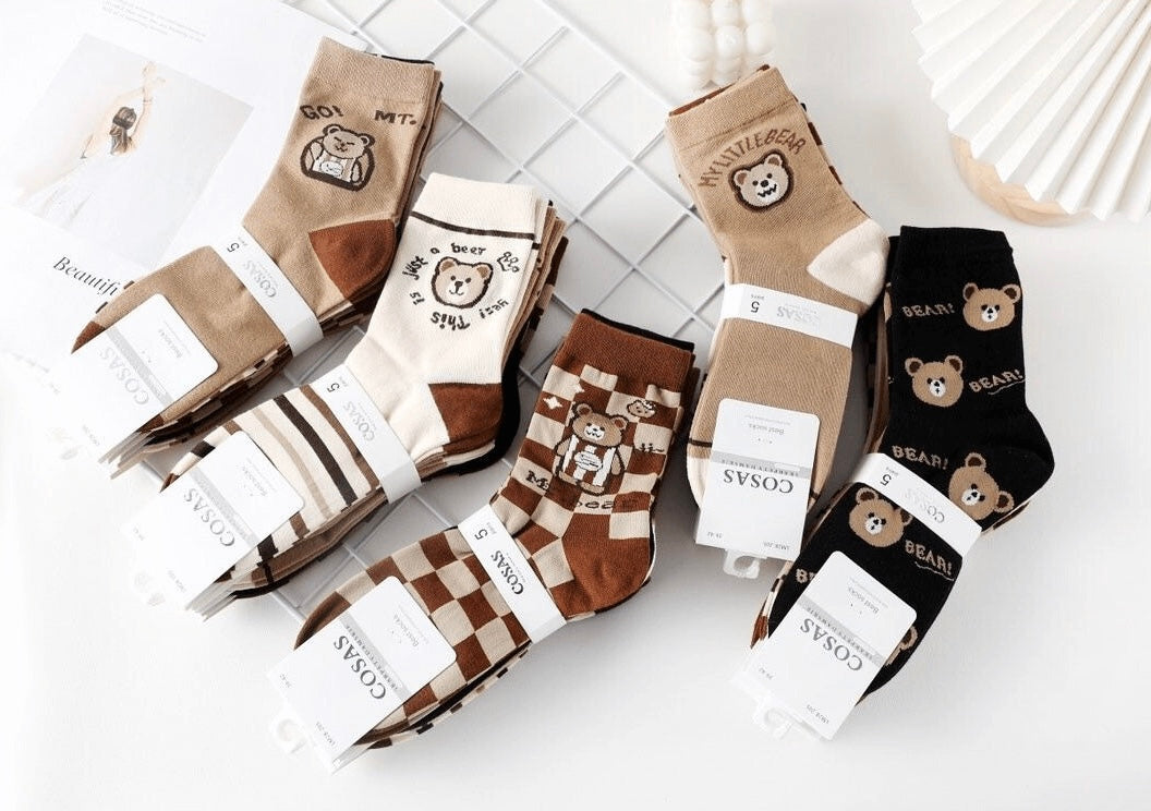 ✅ 5 ali 10 parov ženskih bombažnih nogavic z igrivim motivom medvedkov 🐻